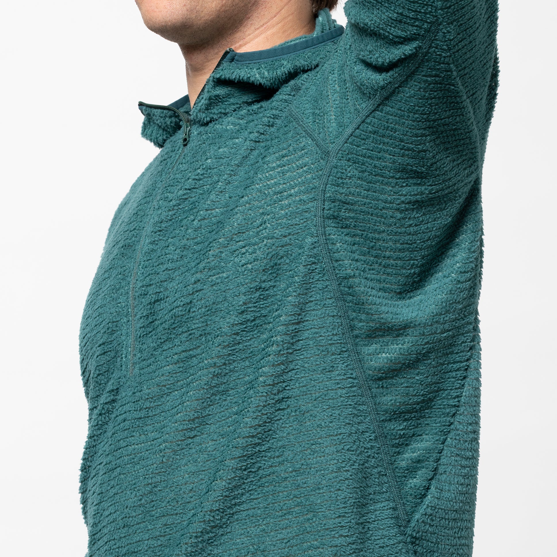 Arpy Jacket Fit: The Arpy is a lightweight midlayer with a slim but not overly tight fit, designed for versatility in alpine layering. It fits comfortably under a shell or a down jacket, offering warmth without bulk while maintaining excellent mobility.