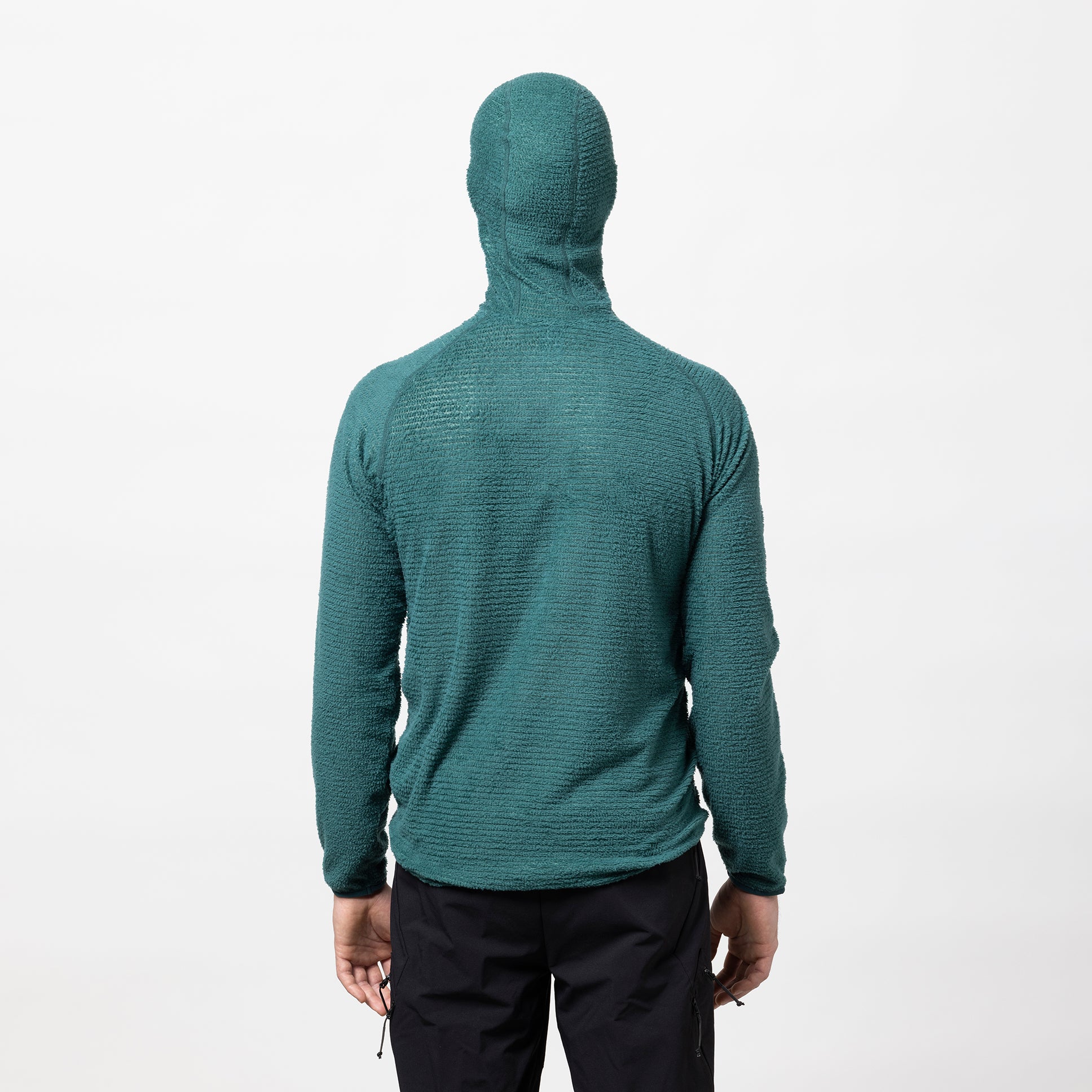 Arpy Hooded Ghost Fleece is a redesigned lightweight, breathable mid-layer built for versatile alpine performance. Like all AlpineStandards products, this piece has been iterated and improved through continuous design refinement. Now constructed with PrimaLoft® Active, it delivers active thermal management, superior moisture-wicking, and temperature regulation during high-output activities. The updated design features ergonomic side panels for improved mobility, extended length for full coverage, and elastic trim at hem, cuffs, and hood for precise fit. Same weight, better ergonomics, enhanced breathability. Ideal for layering or standalone wear in variable mountain conditions.